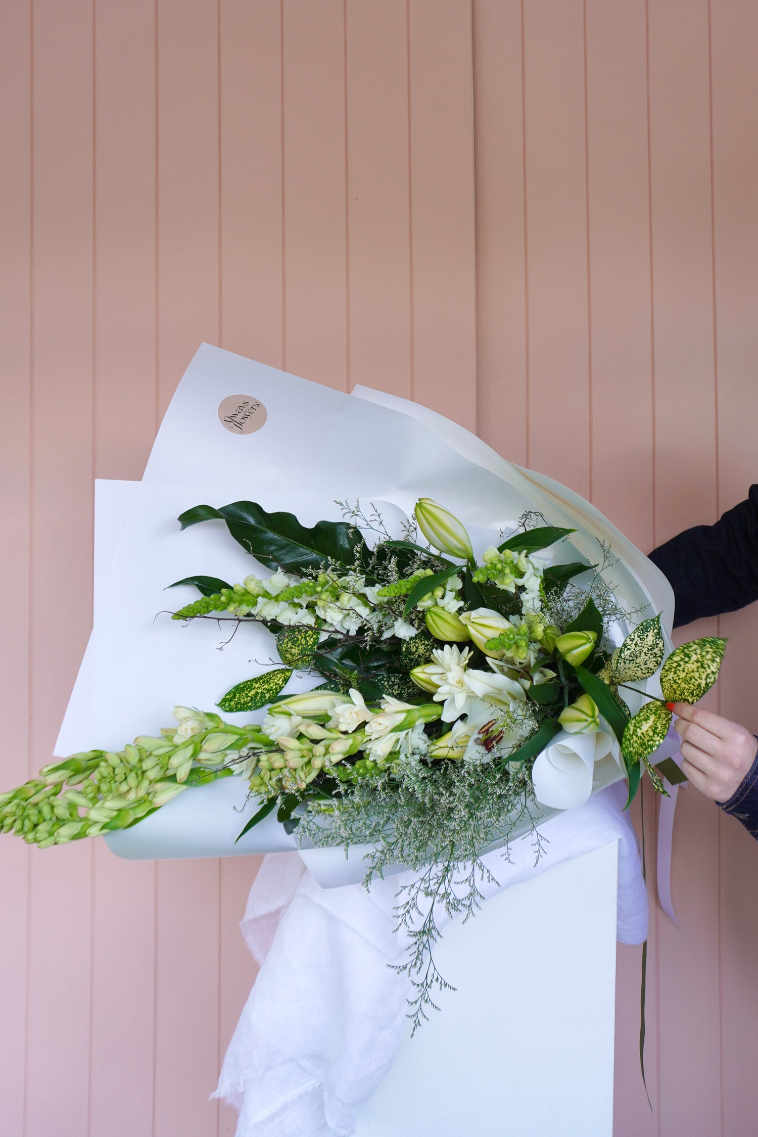 An elegant, serene arrangement of seasonal white and cream-toned blooms, evoking purity and calm. Each bouquet is a harmonious blend of texture and tone, handpicked to reflect the quiet beauty of the season. Perfect for those who love timeless simplicity and soft sophistication.